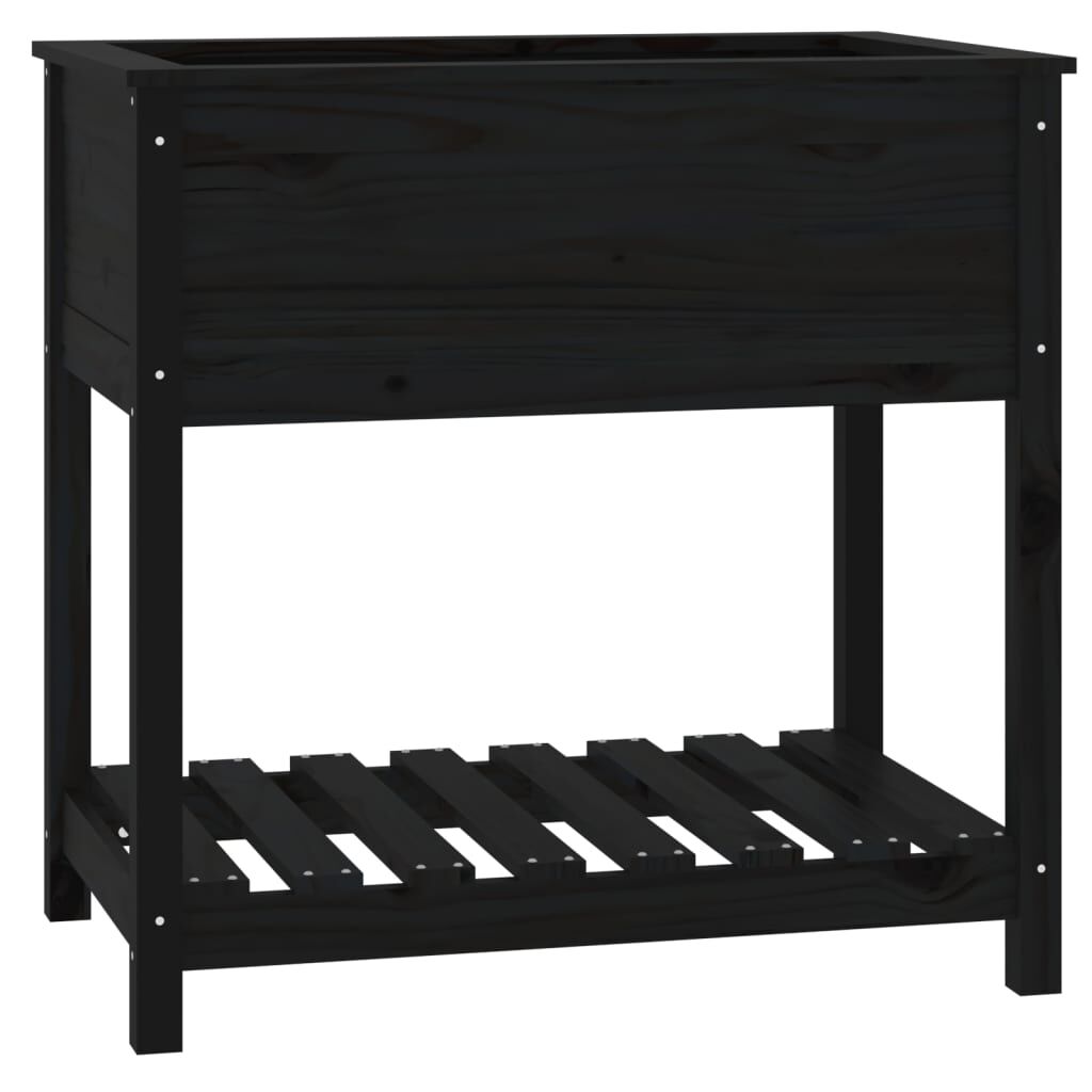 vidaXL puķu kaste ar plauktu, melna, 82,5x54x81 cm, priedes masīvkoks