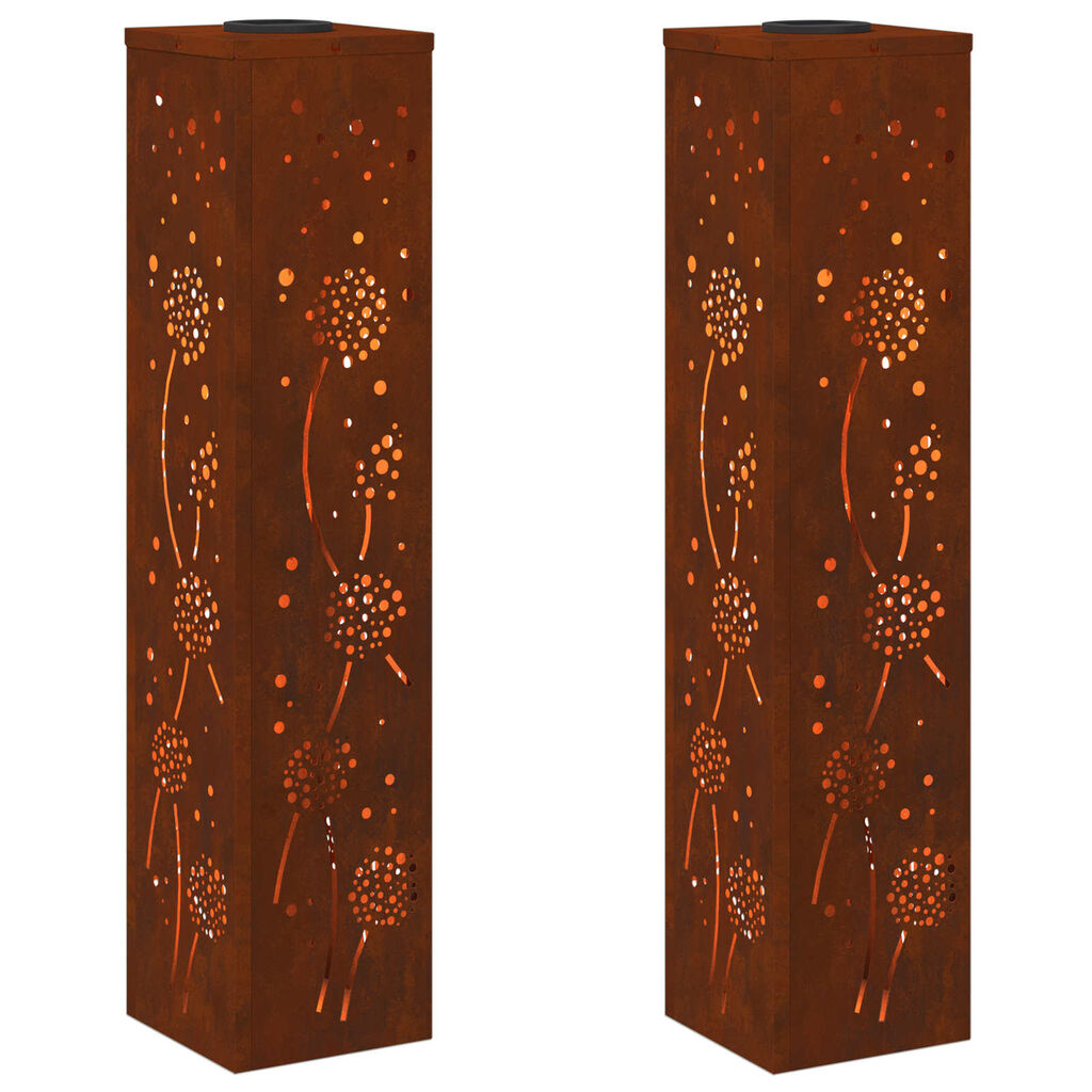 vidaXL Saules LED ceļa gaisma 2 pcs Rūsa Novecināts tērauds