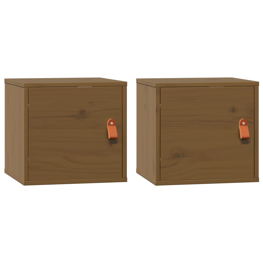 vidaXL sienas skapīši, 2 gab., brūni, 31,5x30x30 cm, priedes masīvkoks