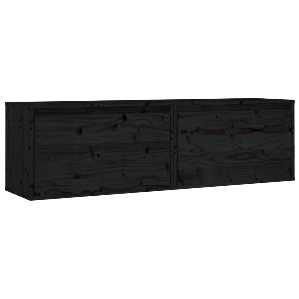 vidaXL sienas skapīši, 2 gab., melni, 60x30x35 cm, priedes masīvkoks
