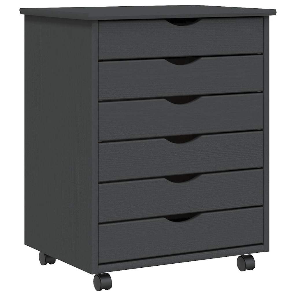 vidaXL skapis ar atvilktnēm un ritenīšiem MOSS, pelēks, priedes koks