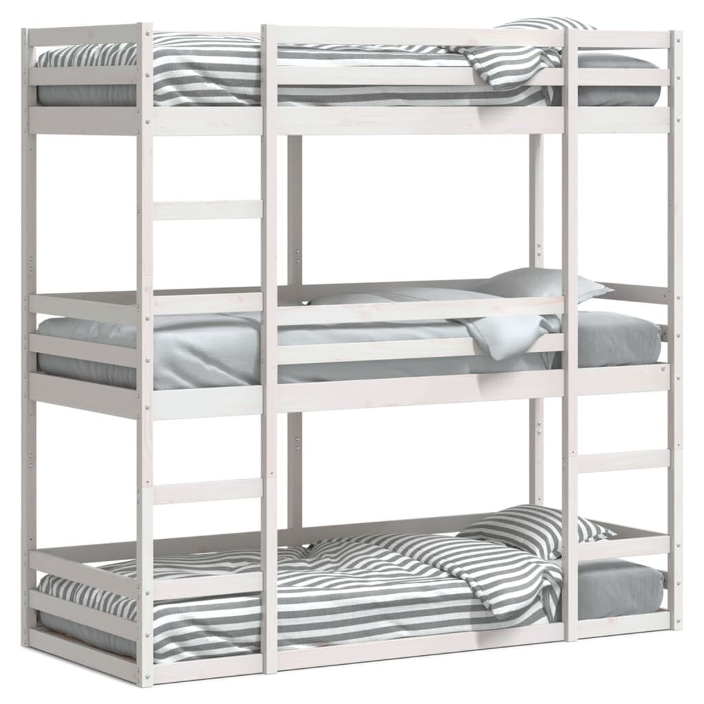 vidaXL trīsstāvu gulta, balta, 80x200 cm, priedes masīvkoks