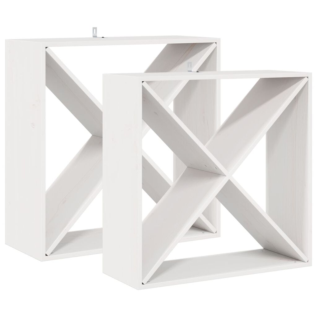 vidaXL Vīna plaukts 2 pcs Balts 62 x 25 x 62 cm Ciets priedes koks