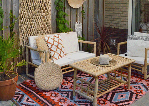 Ielaidiet harmoniju savā brīvdabas dzīvojamā istabā ar dabīgiem materiāliem. Sākot ar koka mēbelēm un beidzot ar akmens, bambusa vai džutas akcentiem, šie āra dzīvojamās istabas materiāli ir noteikti nepieciešami.